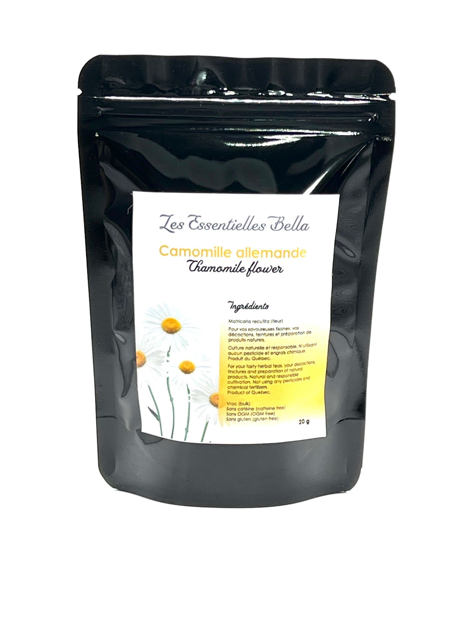 La camomille aussi appelée matricaire est une plante herbacée de la famille des astéracées, une plante médicinale dont on ne cesse de vanter les vertus, qui est cultivée dans le monde entier avec son goût sucré comme le miel, mais un peu amère. Elle est antioxydante, calmante et relaxante lors d'une bonne tisane. Elle est aussi riche en sesquiterpènes.