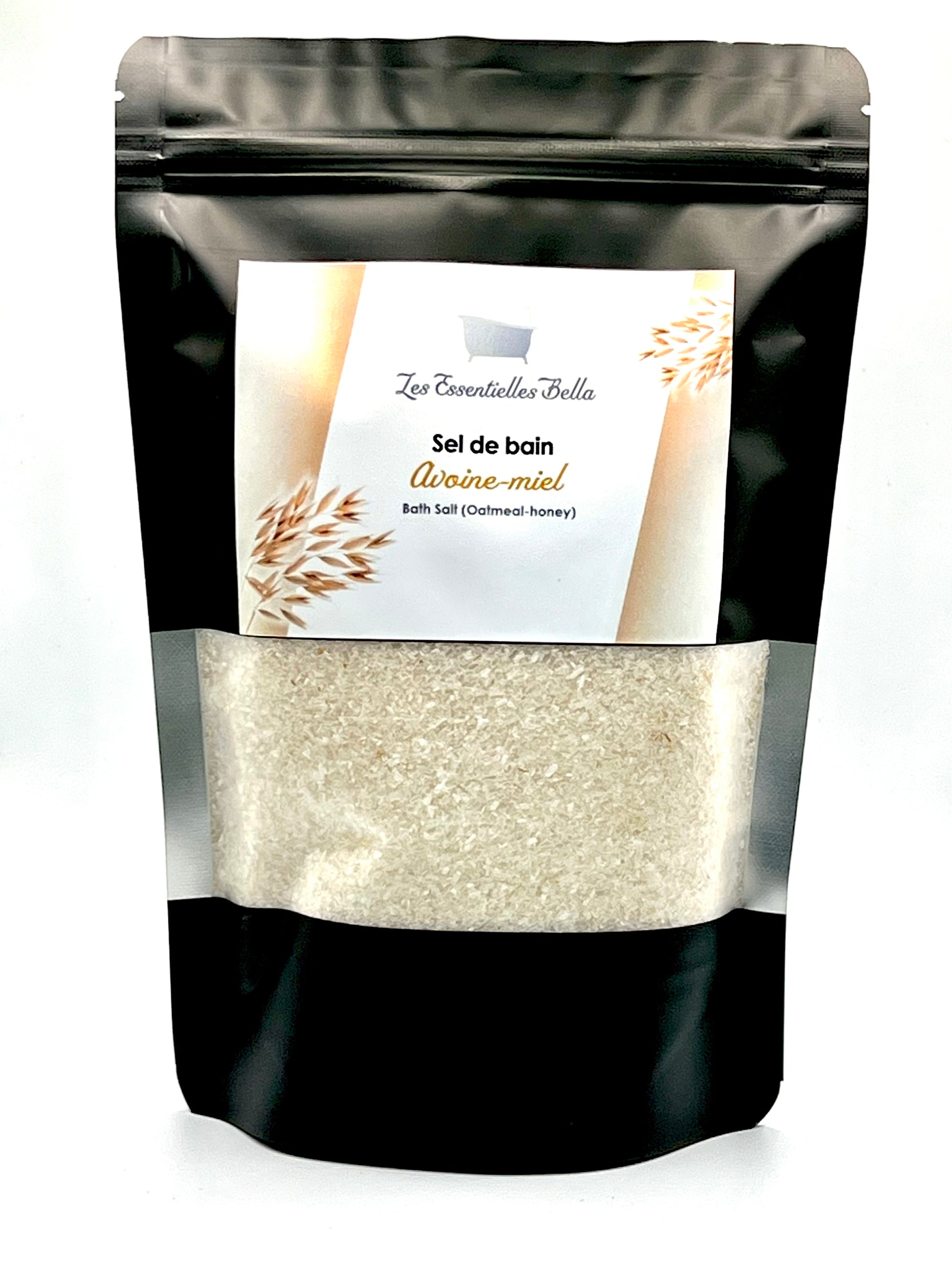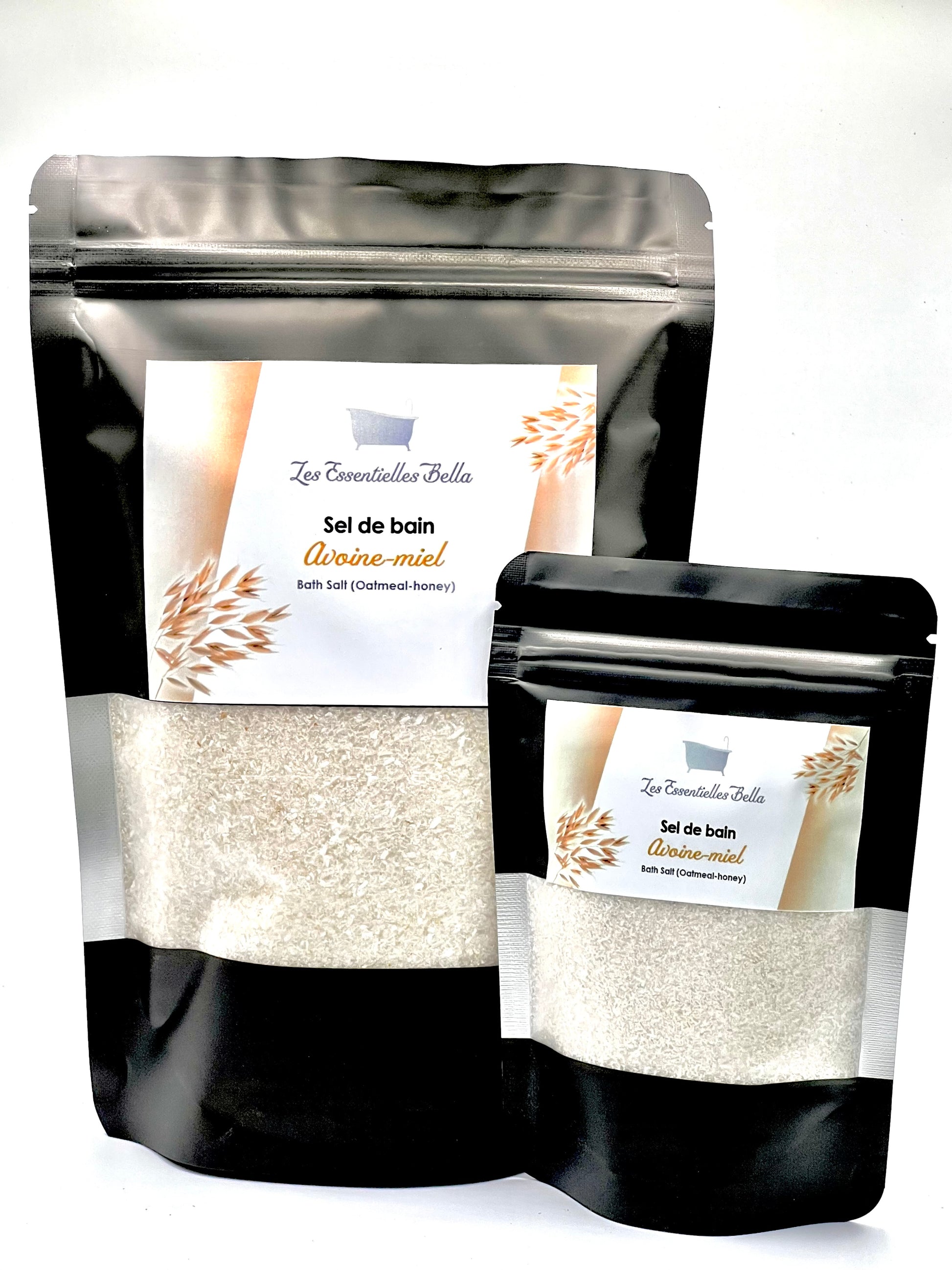 Un sel de bain conçu de sels d'Epson et d'avoine colloïdale avec ajout aromatique de miel.