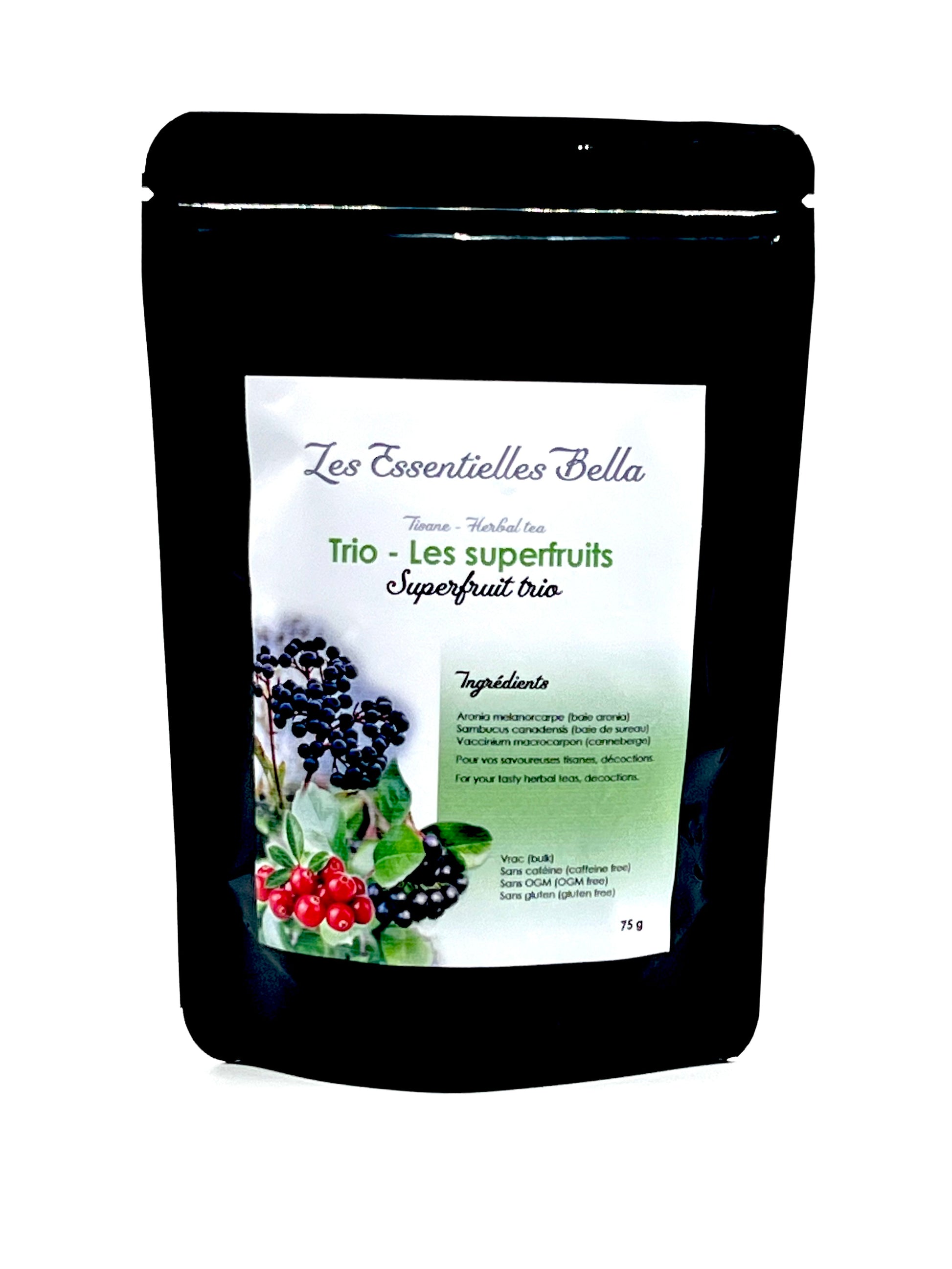 Ce trio est composé de 3 superfruits comme : L'aronia, le sureau noir et la canneberge.